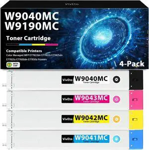 (New Chip) W9040MC W9190MC Toner Cartridge Replacement for HP W9040MC W9041MC W9191MC W9042MC W9192MC W9043MC W9193MC Toner for Color Laser Managed MFP E77822 E77825 E77830 Printer, 4 Pack