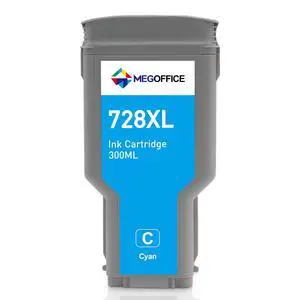 MEGOFFICE Compatible Ink Cartridge Replacement for HP 728 Ink Cartridges High Yield 300ml Cyan for T830 MFP T730 Large Format Plotter Printer