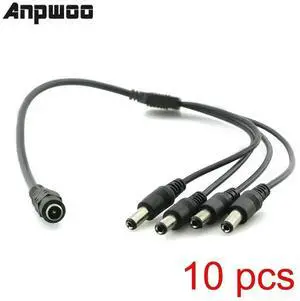 10x DC Power 5.5x2.1mm 1 Female to 4 Male Plug Cable Splitter Security Adapter