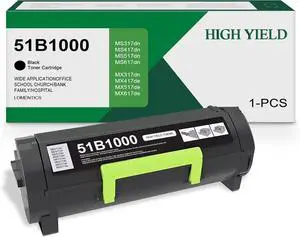 51B1000 Toner Cartridge(1Pack, 3000 Pages High Yield Black) - MS417 Toner Cartridge Replacement for Lexmark MS417dn MS317dn MS517dn MS617dn MX317dn MX417de MX517de MX617de Printer