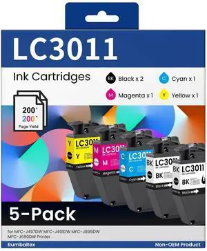LC 3011 LC3011 Ink Cartridges High-Yield LC3011BK LC3011C LC3011M LC3011Y Replacement for Brother LC3011 Ink Cartridges for MFC-J497DW MFC-J491DW MFC-J895DW MFC-J690DW Printer Ink 5-Pack LC3011XL