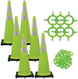 MR. CHAIN 97277-6 Traffic Cone Kit for Plastic Chain Barrier, Green, 14 in