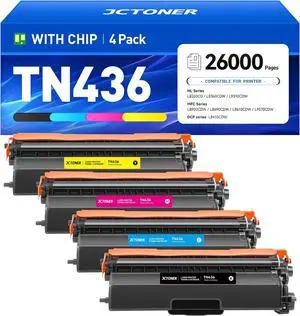 Ennovor TN436 TN-436 Toner 4-Pack Compatible Replacement for TN436BK TN436C TN436M TN436Y HL-L8360 HL-L8360 HL-L9310 MFC-L8900 MFC-L9570 Printer