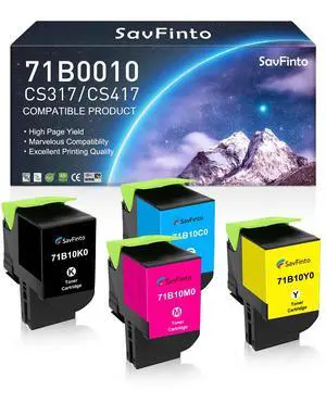SavFinto 71B0010 Toner Cartridge Replacement for Lexmark 71B0010 71B10K0 71B10C0 71B10M0 71B10Y0 for Lexmark CS317 CS417 CS317dn CX317dn CS417dn CX417de CX317 Printer (3,000 Pages, BCMY, 4-Pack)