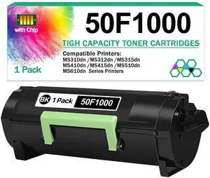 50F1000 Black Toner Cartridge for Lexmark MS310dn MS310d MS312dn MS315dn MS410dn MS415dn MS510dn MS510dtn MS610dn MS610de Printer,High Yield Ink Cartridge 1500 Pages Compatible 50F1H00 50F1X00 50F1U00