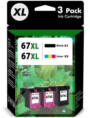 2-PACK Tri-Color & Black 67XL Ink Cartridges for HP Ink Deskjet 1255 2710e 2842e