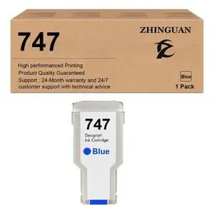 ZHINGUAN Remanufactured 747 Photo Ink Cartridge Works for DesignJet Z6 Z9+ Large Format Printers (1-Blue) 300ml