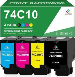 LeciRoba 74C10 74C10K0 74C10C0 74C10M0 74C10Y0 Toner Cartridges Compatible for Lexmark CS720 CS720de CS720dte CS725 CS725de CS725dte CX725 CX725de CX725dte Printer Ink (4-Pack, BCYM)