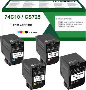 CS725 74C10 74C10K0 74C10C0 74C10Y0 74C10M0 Toner Cartridges 4PK High Yield Compatible for Lexmark CS725 74C10 CX725 74C1S for CS720de CX725de CX725dhe CS720dte CX725dth CS725de Printer Ink (4 Pack)