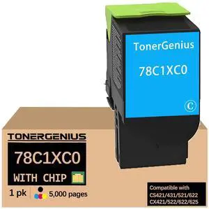 TonerGenius CS421 Toner Cartridges 78C1XC0 Compatible with Lexmark CS421 CS431 CS521 CS622 CX421 CX522 CX622 CX625 Toner Cartridges Cyan