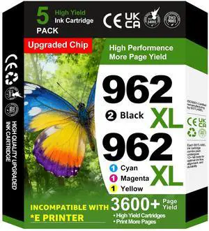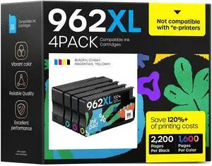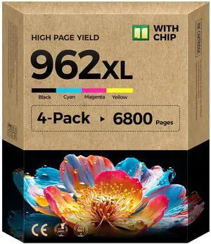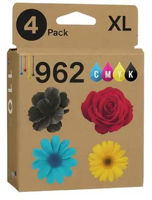 5-Star Compatible Ink Cartridge Replacement for HP 962XL. Works with OfficeJet Pro 9028 9029 9010 9015 9018 9025 9020 9012 9026 9027 Printers. 4 Pack (Black, Cyan, Magenta, Yellow)
