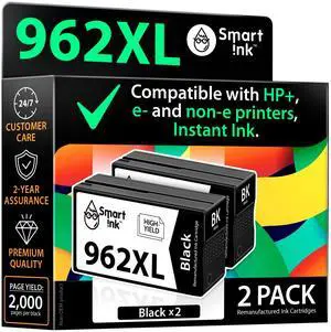 Smart Ink Remanufactured Ink Cartridges Replacement for HP 962 XL 962XL (2 Black, Combo Pack) for OfficeJet Pro 9015e 9018e 9025e 9012e 9019e 9022e 9010e 9028e 9015 9010 9018 9012 9025 9020 Printer