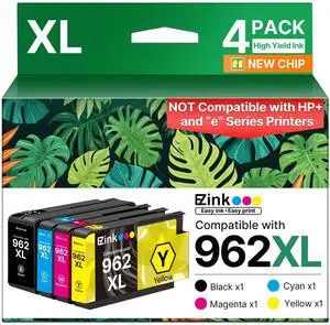 E-Z Ink 962XL Ink Cartridges Combo Pack Replacement for HP 962XL hp 962 color ink cartridges Work for hp officejet pro 9010 9015 9018 9020 9025 9026 9019 9012 9013 9014 9016 9022 9023 Printer (4 Pack)