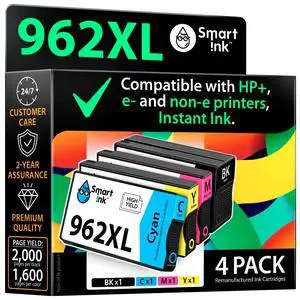 Smart Ink Remanufactured Ink Cartridges Replacement for HP 962XL 962 XL Combo Pack (962XL Black, Cyan, Magenta, Yellow) to use with OfficeJet Pro 9015e 9018e 9025e 9012e 9015 9010 9012 9018 9020 9025