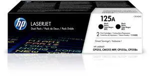 HP Original 125A Black Toner Cartridges (2-Pack) ^^ Works Color Laserjet CM1312 MFP Series, Color Laserjet CP1215, CP1515, CP1518 Series ^^ CB540AD