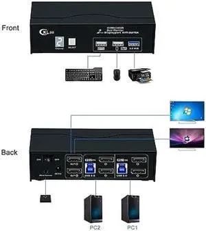 USB 3.0 Switch for 2 USB C Laptop, KCEVE USB 3.2 10Gbps 2 in 4 Out USB C Switcher for 2 PC Share 4 USB Devices, Printer, Scanner, Mouse, Keyboard, with 2 USB C-C cables, KCC204DZUS