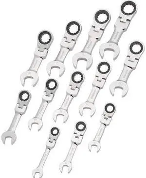 DYNAMIC D076608 12Pcs Metric Stubby Flex Head, Combo Ratcheting Wrench Set,