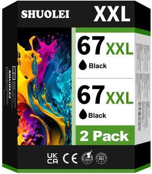 67XL Black Ink Cartridge Replacement for HP Ink 67 for HP67 HP67XL 67XXL use with for HP DeskJet 4155e Ink Cartridges Deskjet 2755e Ink Cartridges 4155 2700 Envy 6055 6000 Printer 67XL Black 2-Pack