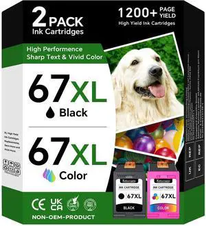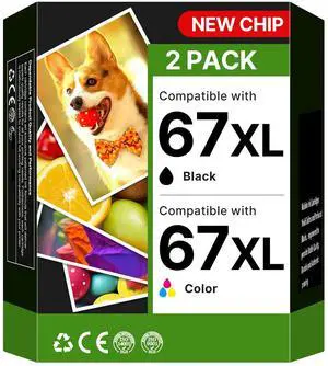 67XL Ink Cartridges Black/Color Combo Pack Compatible for HP 67XL Compatible for HP Ink 67 XL Works for HP DeskJet 4227e 2827e 2755e 2855e 2842e 2800 4155e 2755 2852e Envy 6055e 6000 6455e Printer