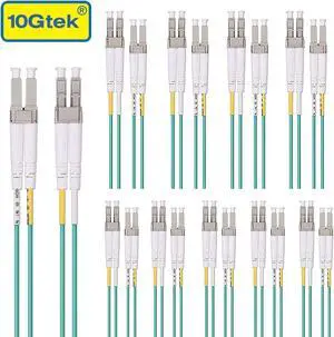 10Gtek 10-Pack Fiber Optic Cable - LC to LC OM3 10Gb/Gigabit Multi-mode Jumper Duplex 50/125 LSZH Fiber Optic Cord for SFP Transceiver, Computer Fiber Networks and Fiber Test Equipment, 2m 6.56 ft.