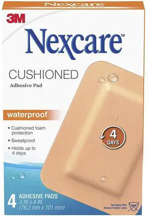 Nexcare Cushioned Waterproof: 3 in. x 4 in. pad / 4-count (Tan)