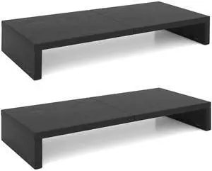 TEAMIX 2 Pack Monitor Stand Riser-20 inch, Black Desktop Stand for PC/TV/Laptop/Printer, Keyboard Shelf Organizer Wood Monitor Riser with Storage