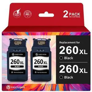 EaseFusion 260XL Replacement for Canon 260XL PG-260 Black Ink Cartridges 260 PG260 Compatible with Canon Pixma TS6420a TS6420 TR7020a TS5300 TS5320 TR7020 Printer Ink Cartridges (2 Black)