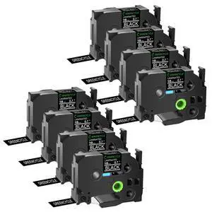 GREENCYCLE TZe-345 18mm 0.7 Laminated Black Tape Compatible for Brother P-Touch White on Black TZ-345 TZe345 3/4 inch TZe TZ Tape for Ptouch PTD410 PTD400 PTD610BT PTD600, 8 Pack