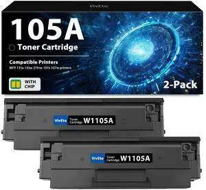 105A W1105A Toner Cartridge with New Chip Replacement for HP 105A 105 W1105A Compatible with HP Laser MFP 135A 135W 137FNW 107A 107W Printers, 2 Pack 105A Black Toner Cartridges