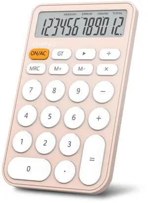 Desk Calculator, Cute 12 Digits Large LCD Display Merchanical Calculator Big Buttons for School,Office,Home,Business, Solar and Battery Dual Power, Battery Include (Pink)- Type: Time Clock