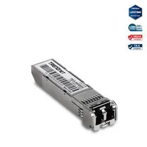 TRENDnet SFP Multi-Mode LC Module, Up To 550m (1804 Ft), Mini-GBIC, Hot Pluggable, IEEE 802.3z Gigabit Ethernet, Supports Up To 1.25 Gbps, Lifetime Protection, Silver, TEG-MGBSX