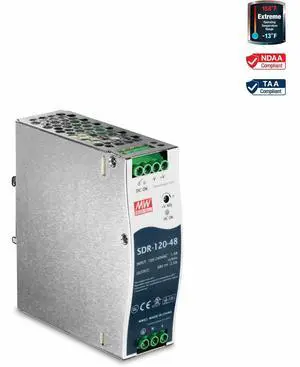 Features: • IP30 rated industrial power supply with integrated DIN-rail mount