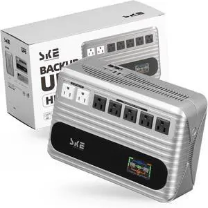 SKE UPS 850VA/480W Battery Backup & Surge Protector for Conmputer,Vertical and Horizontal Placement Uninterruptible Power Supply Orion HL850 White -