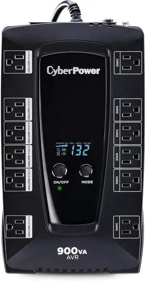 CyberPower AVRG900LCD Intelligent LCD UPS System, 900VA/480W, 12 Outlets, AVR, Compact