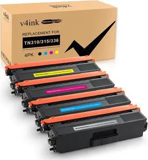 4PK V4INK Compatible Brother TN310 Black Cyan Magenta Yellow Toner Cartridge Set for Brother HL-L8350CDW HL-4150CDN HL-L8350CDWT MFC-L8850CDW MFC-9970CDW Printer (New Version)- Cartridge Quantity: 4 Pack