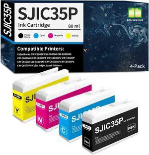 SJIC35P Ink Cartridge 4-Pack Compatible SJlC35P-BK SJIC35P-C SJIC35P-M SJIC35P-Y Ink Replacement for ColorWorks CW-C6000P CW-C6500A CW-C6000A CW-C6500P Color Inkjet Matte Label Printer