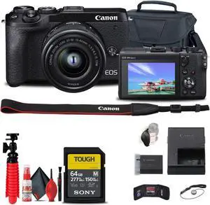 Canon EOS M6 Mark II Mirrorless Camera (Black) with 15-45mm Lens + More