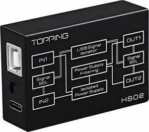 KGUSS Topping HS02 USB 2.0 Audio Isolator - withstands up to 1500VDC, USB-B and Type-C Input, USB-A and Type-C Output, Compatible with PCM32bit 768kHz DSD512