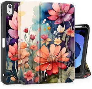 Tuiklol Case for iPad Air 7th 6th Gen 11inch 2025 2024 / iPad Air 10.9 inch 5th 4th Gen 2022 2020 Release with Pencil Holder,Slim Protective Auto Sleep/Wake Trifold Stand Tablet Cover,lstration flower