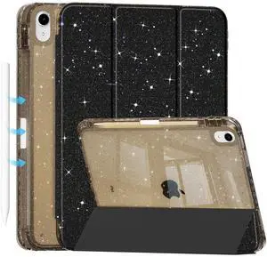 Tuiklol Sparkly Case for iPad (A16 Chip) 11th Gen 11 inch 2025 / iPad 10th Gen 10.9 inch 2022, Built in Pencil Holder with Glitter Clear Back Shell Cover Trifold Stand Auto Wake/Sleep, Sparkly-Black