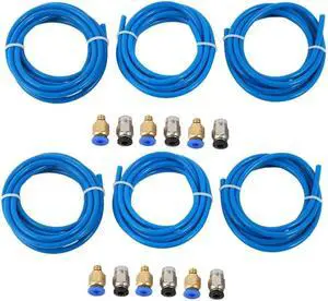 Ruth's sister 6X PTFE Tube Ptfe Blue Tubing(1.5 Meters) With 6 Pieces Pc4-M6 Fittings And 6 Pieces Pc4-M10 Tube Push Fitting
