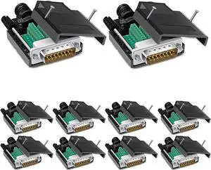 ANMBEST 10PCS DB15 Solderless Connector, RS232 D-SUB Serial to 15-pin Port 16mm Thinner Terminal Male Adapter Breakout Board with Case Long Bolts Nuts