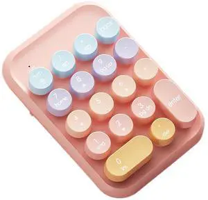 TISHLED Typewriter Style Number Keypad Wireless 2.4G/Bluetooth/USB-C Wired Rechargeable Numeric Pad Linear Membrane Switch 18-Key NKRO Retro Round Keycaps Portable for Multi-Device, Sweet Pink