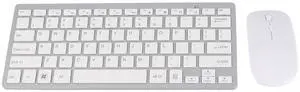 Wireless Keyboard and Mouse Set 78-Key Silver UV-Coated Keycaps Silent Slim Design 2.4G USB Receiver White