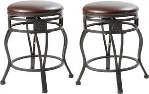 eHemco Swivel Metal Barstool with Faux Leather Seat, 24 Inches, Black, Set of 2