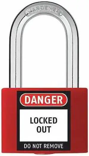 ZORO SELECT 48JR33 Lockout Padlock, Keyed Alike, Aluminum, Red, 1 7/16 in