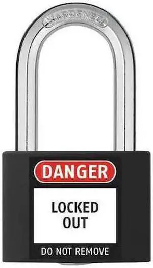ZORO SELECT 48JR43 Lockout Padlock, Keyed Different, Aluminum, Black, 1 7/16 in