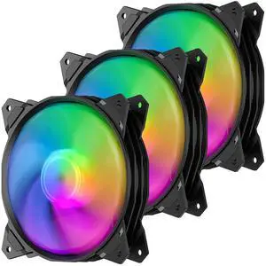 Long Life 120mm 3-Pin High Airflow Quiet Edition Rainbow LED Case Fan for PC Cases, CPU Coolers, and Radiators 3-Pack,(PF120CF3-3)