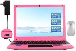HBESTORE10.1 Mini Laptop, IPS Display - Intel Celeron N4000 (Up to 2.6GHz), 8GB RAM 256GB SSD Windows 11 OS, Lightweight & Powerful Small Computer (256GB,Pink)