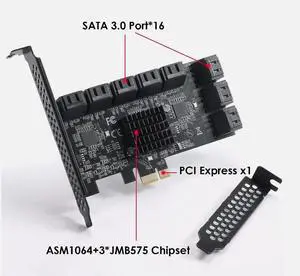 Aomoproing SA3116-C 16-Port PCIe X1 SATA Expansion Card with SATA and Power Cables, Compatible with Windows,Linux,Mac OS,NAS